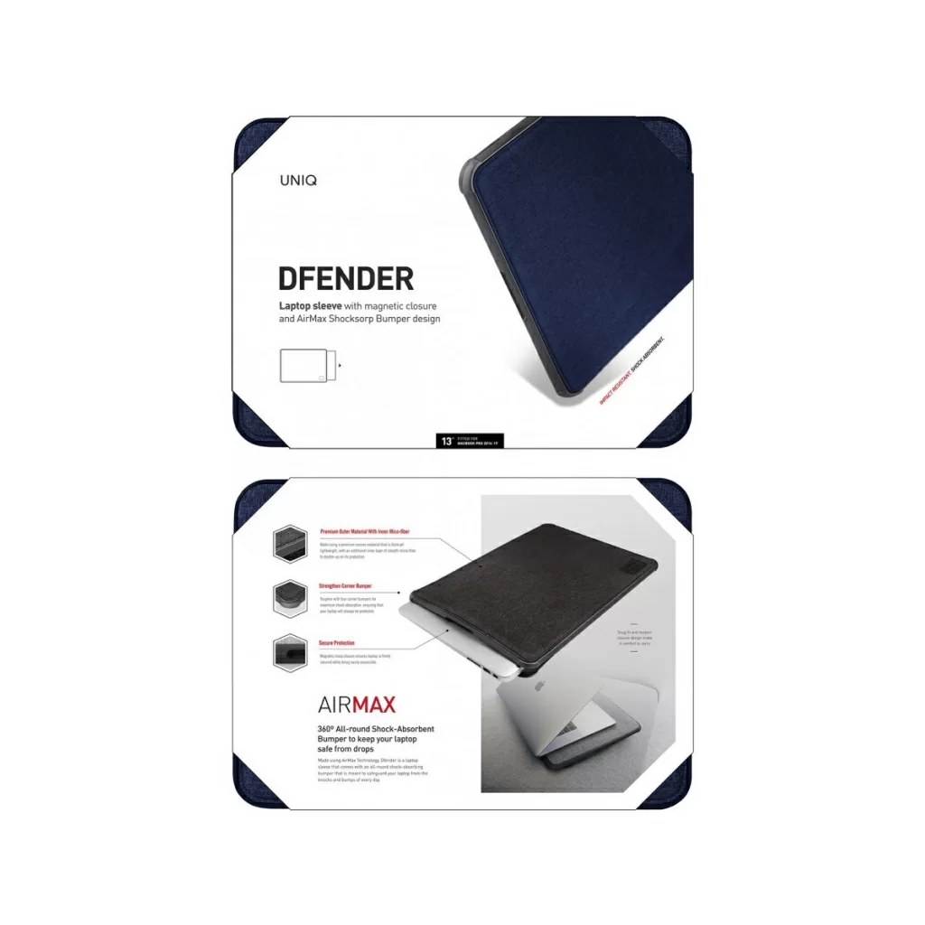 Чехол Uniq DFender Sleeve Kanvas для MacBook Pro 13 (2016/2018) – прекрасное дополнение для вашего компьютера. Практичный, качественно изготовленный внутри и снаружи, он обеспечит отличную защиту вашему MacBook.