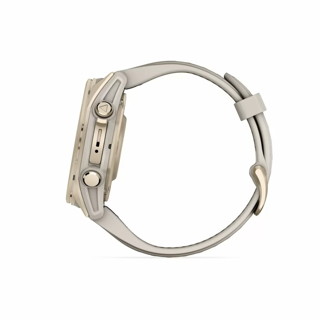 Умные часы Garmin Fenix 8 Sapphire AMOLED 43 мм, золотистый корпус, дымчато-серый ремешок