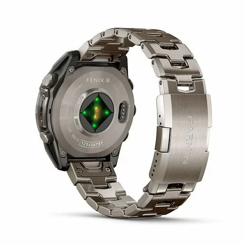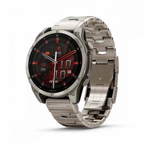 Garmin Fenix 8 — умные часы в титановом корпусе с поддержкой датчиков мониторинга здоровья, совместимы со смартфонами на ОС Android и iOS. Могут принимать звонки и сообщения. Есть функция голосового управления. С часами можно нырять в воду на глубину до 100 м.- Поддержка Android и iOS.