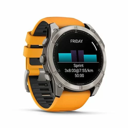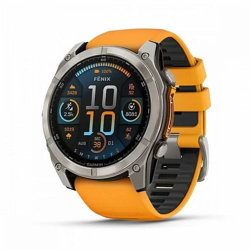 Умные часы Garmin Fenix 8 Sapphire AMOLED 51 мм, титан, ремешок - силикон, оранжевый/графит
