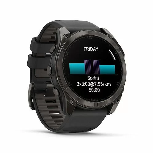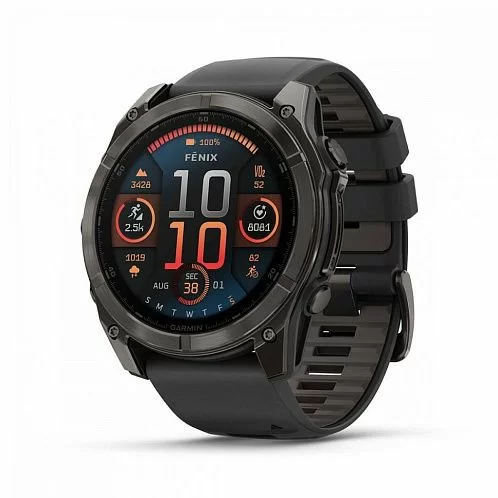 Умные часы Garmin Fenix 8 Sapphire AMOLED 51 мм, титан с DLC, ремешок - силикон, чёрный/серый