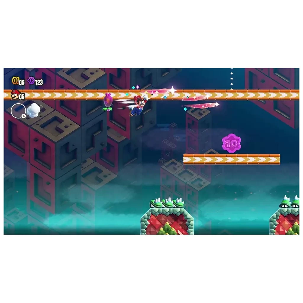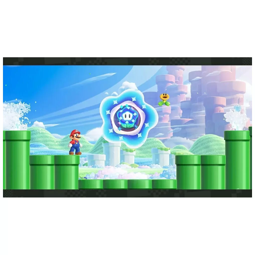 Окунитесь в мир чудес в Super Mario Bros. Чудо для Nintendo Switch!Классический игровой процесс с боковой прокруткой Mario перевернут с ног на голову с добавлением Wonder Flowers! Эти предметы, меняющие правила игры, вызывают захватывающие моменты, которые вы должны увидеть, чтобы поверить. Станьте свидетелями того, как трубы оживают, сеют хаос в виде гигантского шипастого шара, и увидите еще более неожиданные события, называемые чудо-эффектами.